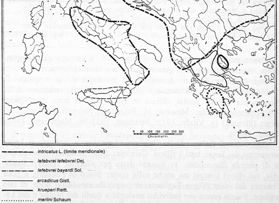 ssp. intricatus Linné, 1761 C-Europe(Germany & ?Sweden), France, Holl., N-Italy, Carpath.; Yug., N-Greece, Eur.Turkey