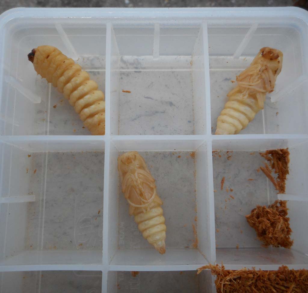 Due delle pupe in attesa di sistemazione + una delle 2 prepupe.