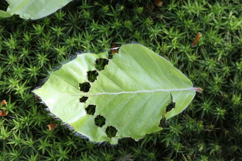 Ovviamente cercavo attelabidi, ed ho osservato diversi Deporaus betulae, rigorosamente su carpino bianco. Ho cominciato ad osservare anche le foglie di faggio, e ne ho trovate parecchie mangiate in modo caratteristico: