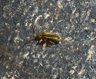 ieri cercando su internet ho trovato parecchie similitudini estetiche con un insetto dal nome "Acalymma vittata", ma davvero non ne sono sicura ( ho letto che sono legati alle cucurbitacee e che sono vettori di un virus che potrebbe aver attaccato le piante)