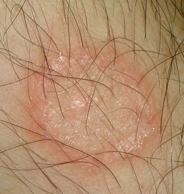 Come puoi intuire anche se il mio mestiere da molti è considerato banale/facile in realtà non è così immediato distinguere tra lesioni infiammatorie della cute apparentemente molto simili tra loro...finora le diagnosi possibili a mio parere sono: reazione granulomatosa, reazione a puntura di insetto o più probabilmente aracnide, eritema migrante da puntura di zecca, micosi, pitiriasi rosea di Gibert