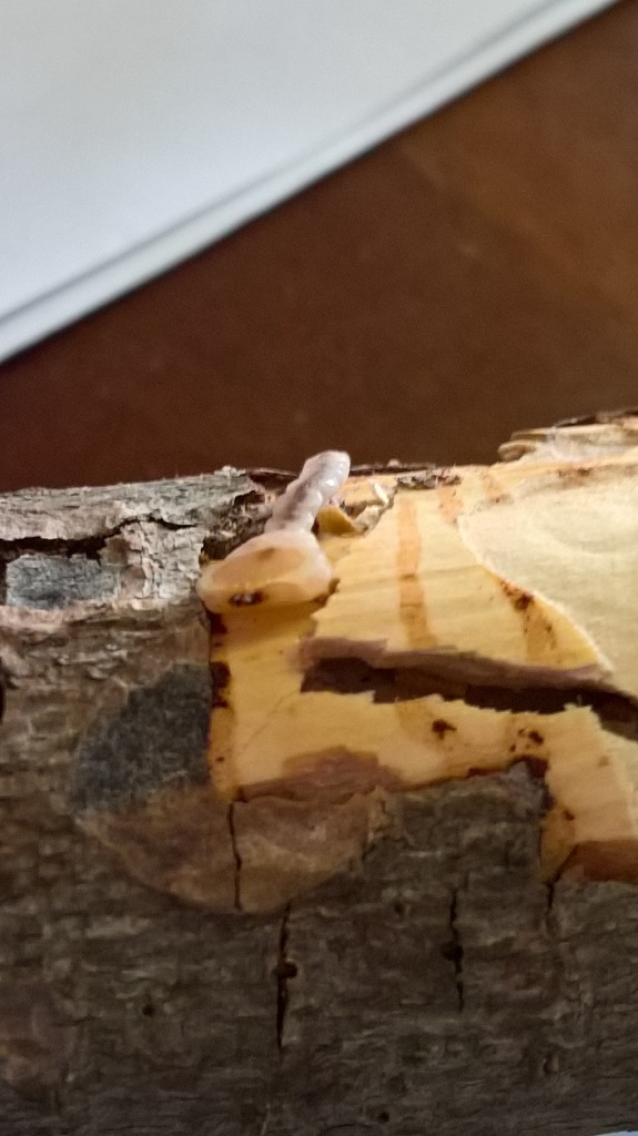 Un consiglio. Quando la larva sarà entrata nel ramo, mettilo dentro ad una scatola di plastica (tipo quelle grandi dell'Ikea) con un po' di terreno sul fondo. Il terreno deve essere abbastanza umido. Il contenitore va tenuto ben chiuso. In questo modo puoi mantenere un'umidità ideale e non rischi che si secchi. Se invece trovi troppa condensa apri per qualche giorno il contenitore e fai asciugare il terreno. Poi richiudi.