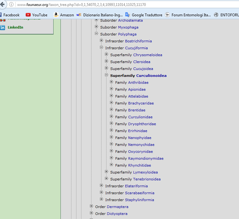 La mia richiesta è capire se ci fossero su qualche testo le chiavi per la superfamiglia Curculionoidea.