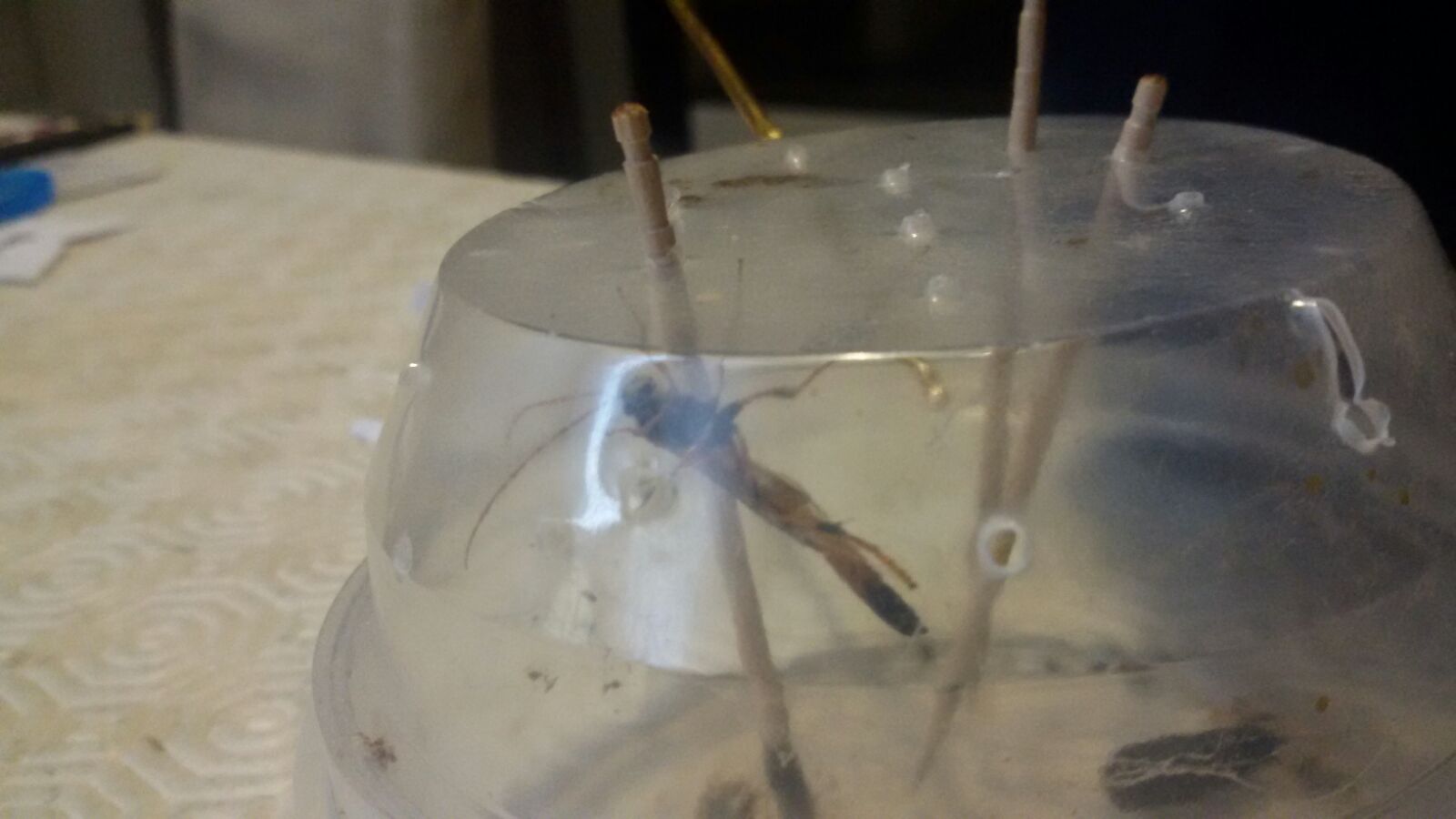 la vespetta nel contenitore dove si è schiusa