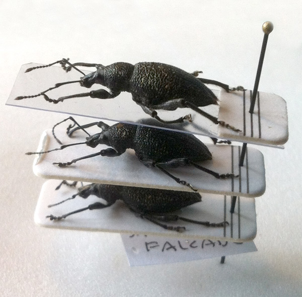 Oppure dei normali cartellini triangolari con un foro di forma e dimensioni variabili a seconda del tipo di insetto e di dove risiedono i caratteri diagnostici.