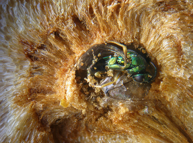 La muffa verde la incontro spesso. Infatti si sviluppa sulle larve/pupe di coleotteri xilofagi, morti sia in celletta che nella galleria. Alla fine non resta quasi niente dell'insetto. Invece, quando capita ad un adulto, almeno dalle parti dell'esoscheletro si riesce generalmente ad identificare il malcapitato.