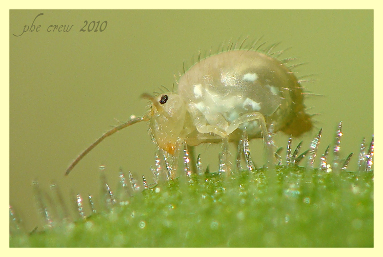 ...questo in foto dovrebbe essere Sminthurus viridis , che (leggendo in internet) provoca ingenti danni all' agricoltura, specialmente sulle foglie, provocando delle piccole e tonde erosioni.