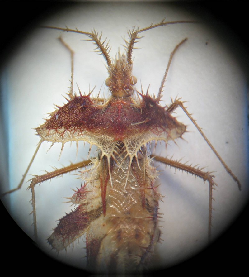Caro Marcello, da eterotterologo ti ringrazio dell'omaggio che hai voluto rendere alla categoria alla quale mi pregio di appartenere. La bella specie che hai magnificamente fotografata vive su piantine del genere Paronychia che crescono su substrati semirocciosi sui quali gli esemplari si mimetizzano perfettamente. Gli adulti si muovono eseguendo un tipico dondolìo che sembra una danza. La ricca dotazione di spine serve a proteggere le uova che la femmina, subito dopo l'accoppiamento, depone sul dorso del maschio -definito "ostetrico"- che continua a portarle addosso sino alla schiusa (la stessa cosa avviene in alcuni Eterotteri acquatici). L'ovideposizione può avvenire anche sul dorso di un individuo diverso dal partner (nel 27% dei casi su un'altra femmina) o su piante. L'utilizzazione di un altro individuo per deporvi le uova comporta il vantaggio di un maggiore successo riproduttivo, grazie ad una netta diminuizione del tasso di predazione e di parassitizzazione delle uova rispetto a quelle deposte sulle piante. Questo vantaggio compensa decisamente la maggiore predazione subita dagli individui che portano uova in quanto questi divengono più visibili, perdono la mimetizzazione con l'ambiente e non sono più capaci di volare per via della massa di uova 'incollate' sulle emielitre.