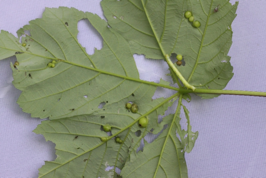 Ma soprattutto: se avete occasione di raccogliere in zone simili a quella che ho fotografato all'inizio del post (boschi mesofili, freschi, con acero e castagno) date un'occhiata alle foglie degli aceri e cercate le galle, facili da identificare. Se ci sono le galle, tra aprile e giugno cercate gli individui adulti, a vista o battendo le fronde di aceri anche molto bassi. Per quel che mi riguarda penso che la prossima primavera farò una puntata sul Vulture, da dove era segnala la femmina controversa vista da Faustino.