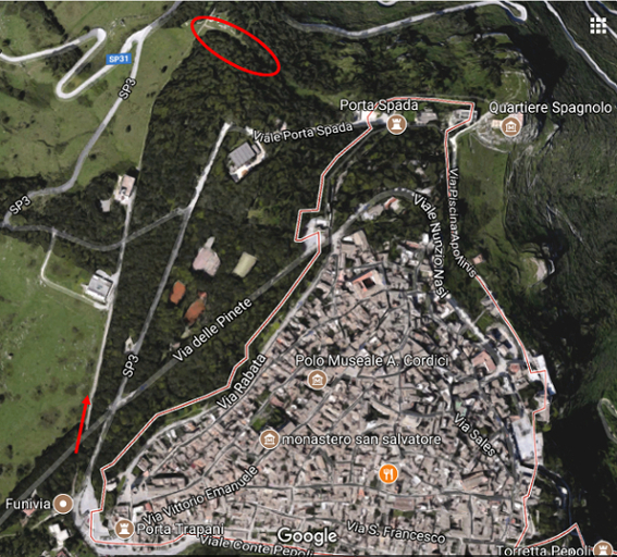 Proprio sulle pendici di Erice, a pochi metri sotto le mura della città.