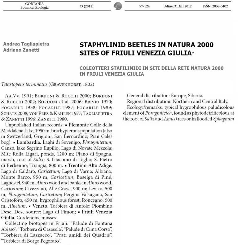 GLI STAFILINIDI DELLE RISERVE NATURALI "AGORAIE DI SOPRA E MOGGETTO" (LIGURIA, GENOVA) E "GUADINE PRADACCIO"