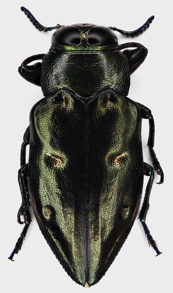 Stavolta, una specie sobria. E' incredibile come in moltissime specie di Chrysobothris del sottogenre nominale si ritrovi, su diversi continenti, una ornamentazione elitrale quasi uguale, costituita dalle solite 6 fossette più o meno grandi e colorate.