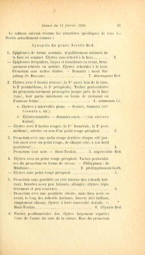 Ho trovato una chiave di Bedel per quasi tutte le specie conosciute del genere Nesitis (Bull. Soc. Ent. de France, 1920):