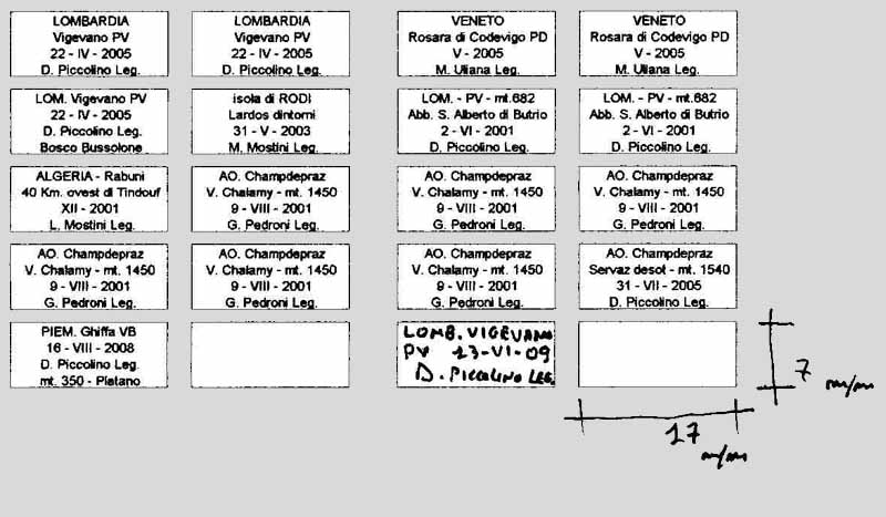 ah, un piccolo suggerimento, se qualcuno di voi ha una taglierina, faccia i cartellini in una tabella, e poi, se ha tanti insetti raccolti lo stesso giorno e la stessa data li taglia più velocemente e ne taglia di più :D :)
