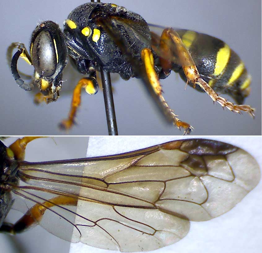 Più difficile è identificare l'altro esemplare, il maschio. Escludo sicuramente un Harpactus; secondo me potrebbe essere, però, il maschio di Hoplisoides punctuosus. Prova di nuovo le chiavi e vedi se può essere... magari prova anche a fare una foto della parte bassa della mesopleura con le sue carene (acetabolare e epicnemiale=omaulus) che dovrebbero essre caratteristiche del genere. Credo però che l'ipotesi maschio di Hoplisoides sia da prendere in considerazione.