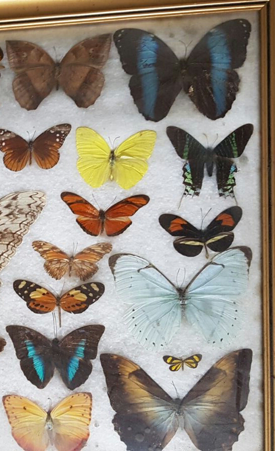 A me non sembran nemmeno scatole entomologiche...ma quadretti con fondo di polistirolo grana grossa,il peggiore che ci sia,dove le farfalle appoggiano o peggio ancora incollate con chissà che colla,senza esser spillate (almeno io non vedo spilli),sembran tanto quadretti comprati per pochi eur in qualche mercatino per turisti,da qualche parte nel mondo,pagati sicuramente qualche dollaro...come dire...amici,amici...amici un ca... :(