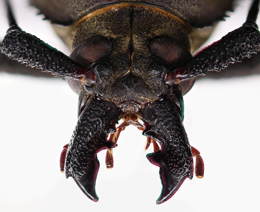 Riguardando le mie precedenti fotografie mi sono reso conto che l'aberrazione cromatica era presente in tutte, ma non vi avevo fatto caso, in particolare sulle superfici lisce e curve (mandibole, onichio). Per questo dovrò rifarle tutte.