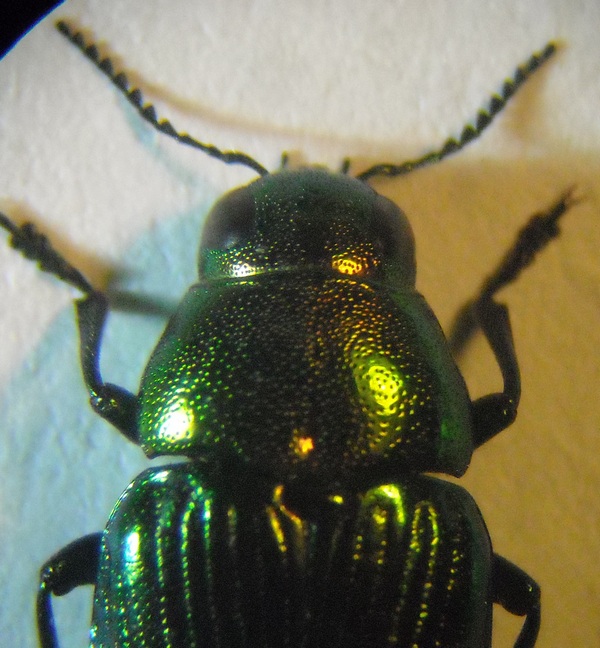 giuseppe55 ha scritto: Vedo cosa fare per le foto. A sinistra E. micans. Scutello diverso. Angolo pronoto elitre diverso. Strie ed interstrie quasi uguali. Penso che la foto serva per poter escludere E. micans. Ciao Giuseppe