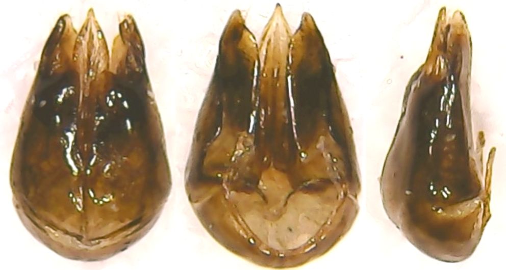 La foto ha un riflesso centrale che inganna, ho estratto soltanto un'appendice a segmenti telescopici tipo ovopositore, non ho visto capsula genitale, stasera verifico meglio.