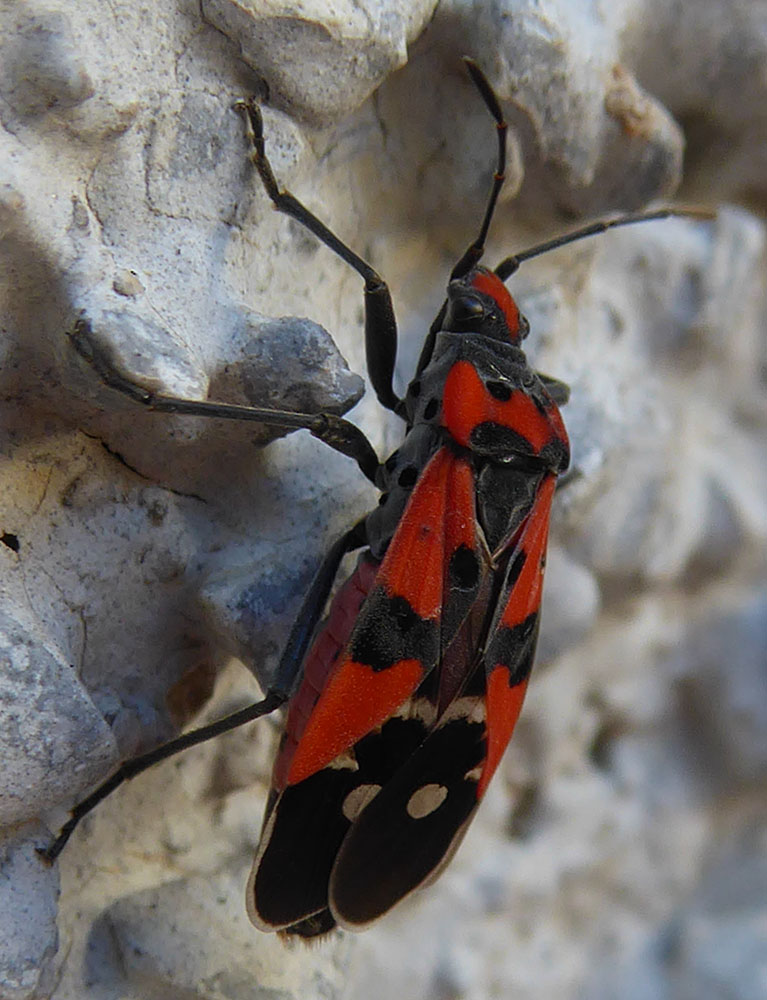 Lygaeus sp. - Lygaeidae. La scelta è limitata a Lygaeus equestris (Linnaeus, 1758) e Lygaeus simulans Deckert, 1985.