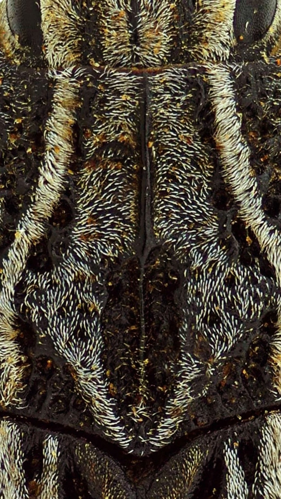 Un altro esempio di coleottero vistosissimo una volta preparato che però, nel suo ambiente, si confonde veramente bene.