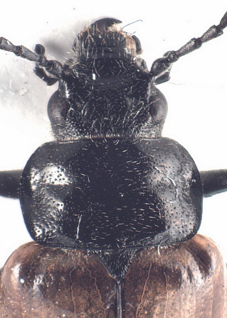 Epipleure (ovviamente viste di profilo) molto larghe sotto gli omeri, poi ristrette rapidamente e molto bruscamente ridotte in larghezza fino a scomparire quasi all'altezza delle anche posteriori => SI