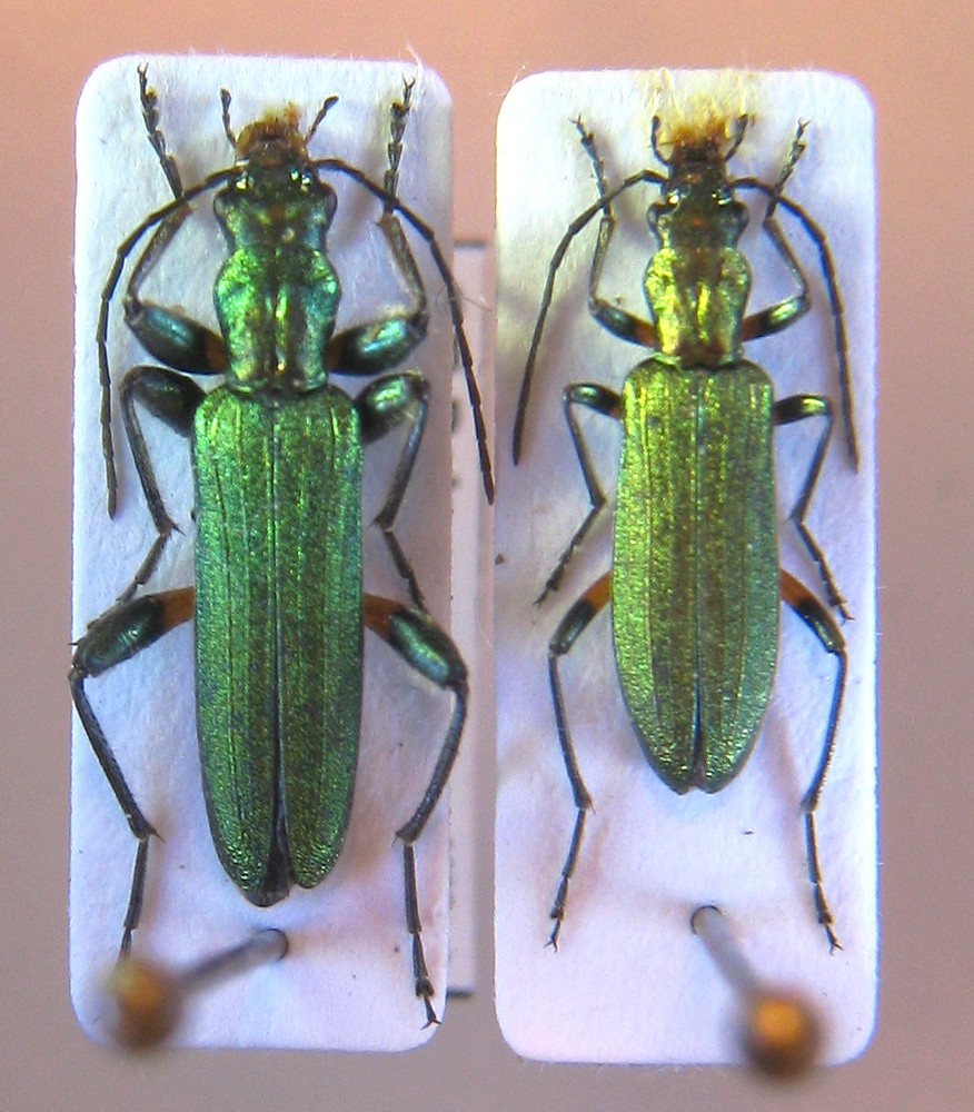 Ciao Andrea, sono d'accordo, molti Oedemeridae, soprattutto le Chrysanthia tra gli altri generi, meriterebbero un approfondimento, che nel mio piccolo ho iniziato estraendo e analizzando alcuni caratteri anatomici ancora non presi in considerazione. Per quanto riguarda la C. varipes sono d'accordo con te, ho degli esemplari femmina molto piccoli e che si fa fatica a separare dalla C. viridissima e alcuni maschi che sono il doppio. Molto variabile, sospetto poi che i femori anteriori siano un carattere sessuale secondario allometrico perchè nei maschi di dimensioni maggiori sono molto più sviluppati che nei maschi piccoli. In ogni caso questa specie è ben caratterizzata almeno considerata come oggi (e se non si rivela essere un complesso di specie-sottospecie). Io ne ho pochi esemplari della ssp. nominale, proprio del Peloponneso mi pare ma sono in linea con la specie. Bisogna anche considerare che in quanto a colorazione dei femori può variare, fino ad arrivare all'estremo della ssp. planiceps che ha i femori completamente metallici. Chissà, magari se si riesce a reperire un po' di materiale si riesce a dire qualcosa di certo... C. flavipes invece mi risulta delle Sporadi e di Cipro, da cui è arrivata credo dalla Turchia come altre bestie, trattandosi di una specie tipicamente medio orientale. C. geniculata infine non mi risulta del Peloponneso ma ne ho un esemplare di Creta. Hanno fatto diverse sottospecie, ed avendo un areale molto vasto potrebbero nascondersi delle sorprese. Gli esemplari che ho io però (pochi) sono tutti molto costanti