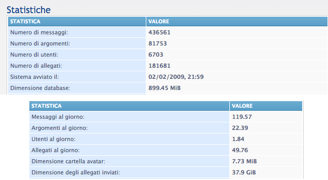 Per chi desidera conoscere altri dati statistici aggiungo qui appresso una piccola tabella con altri numeri del forum.