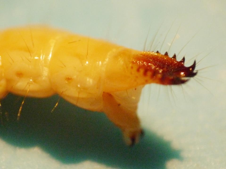 L'ancoraggio è tipico delle larve di Lacon punctatus - che non a caso hanno biologia simile - che hanno una specie di ganascia che si divarica.