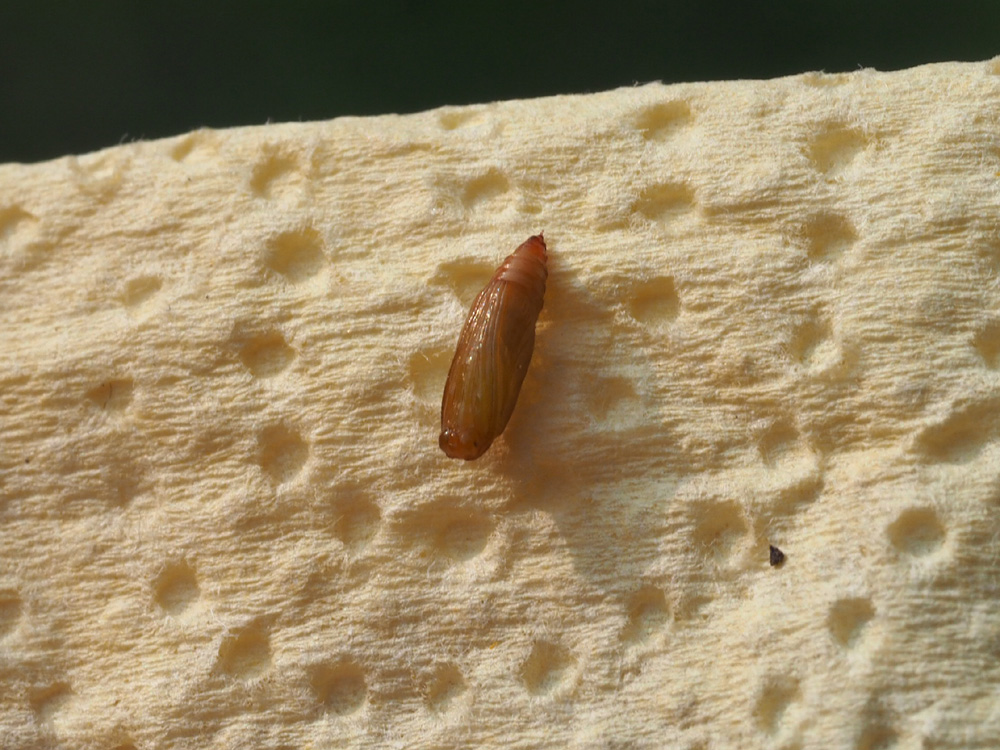 La data si riferisce al rilevamento delle larve su Rosmarinus officinalis L. ovvero il 15 ottobre 2018. Il 20 ottobre la prima larva si è incrisalidata. Tra ieri e oggi, sono nati i primi due adulti dei tre che ho allevato.