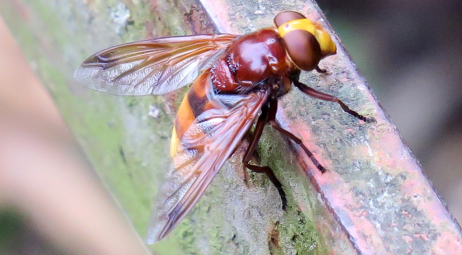 Per seguire le chiavi di Syrph the Net per il genere Volucella bisognerebbe poter esaminare il colore degli sterniti, la distribuzione dei micropeli sull'ala e la parte laterale inferiore della testa (genae) tutte cose qui non visibili o poco chiare. Mi sembra tuttavia che quello che si vede renda più probabile Volucella zonaria (Poda, 1761).