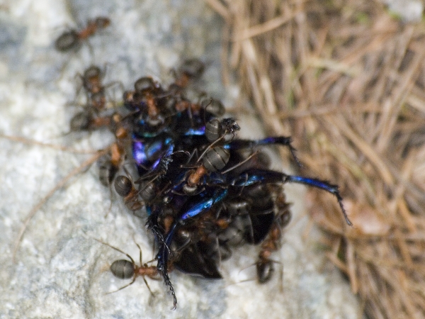 Si riesce a capire chi è lo sfortunato coleottero che viene mangiato? Forse uno scarabeide? Se qualcuno risale alla specie della "vittima", i miei complimenti più sinceri.