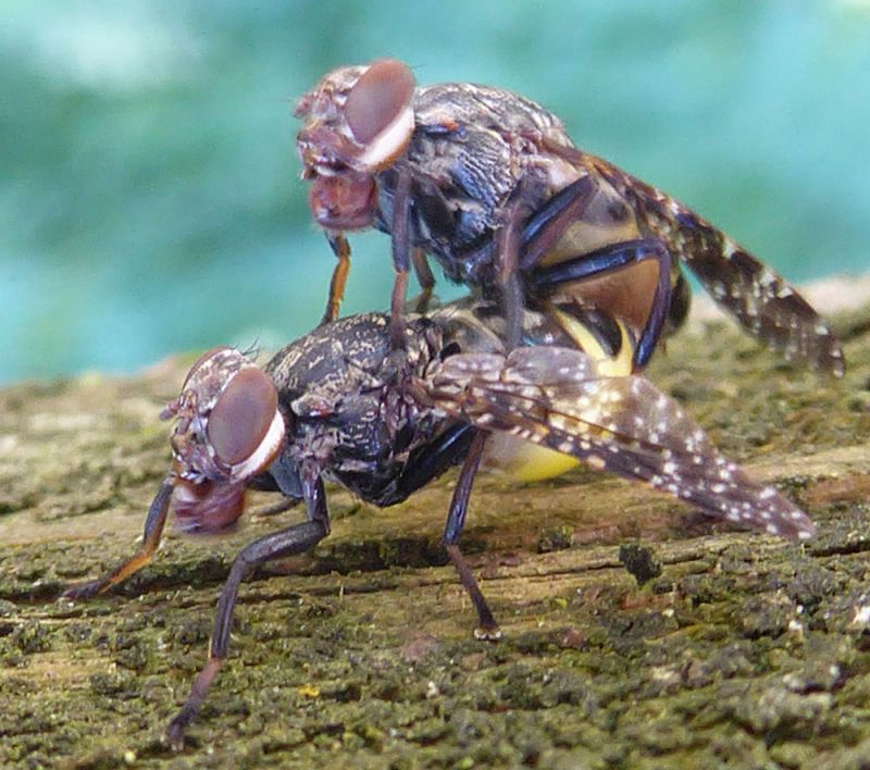 Buonasera! Ho fotografato tempo fa queste due mosche che ci davano dentro. Si riesce ad identificarle?