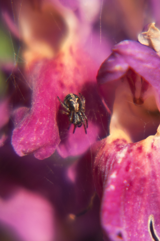 Anche questo è un'incognita che mi piacerebbe risolvere. Le dimensioni sono forse al massimo 5 mm. Dico forse perché fino a che non avevo scaricato le foto sul PC, non mi ero accorto della sua presenza. Penso che sia un salticide ... ma nonostante quel caratteristico disegno sull'addome ... non sono riuscito ad andare oltre. Grazie a chi risolverà l'arcano!