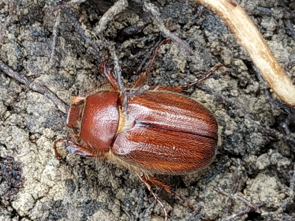 I caratteri diagnostici tradizionali, che permetterebbero di identificare il genere, si vedono poco (pronoto non ribordato alla base) o nulla (antenne di 10 articoli), ma ne sono visibili altri sufficientemente indicativi quando si siano maneggiate un pò queste bestiole: la prima cosa che salta all'occhio è il colore rossiccio dei tegumenti, incompatibile con Amphimallon assimile che poi si esclude anche per un altro carattere di valutazione più semplice: la punteggiatura del pronoto è rada e grossa invece che densissima e sottile. Altre specie di Amphimallon, però, hanno punteggiatura più simile a quella in foto, ad esempio A. fuscum.