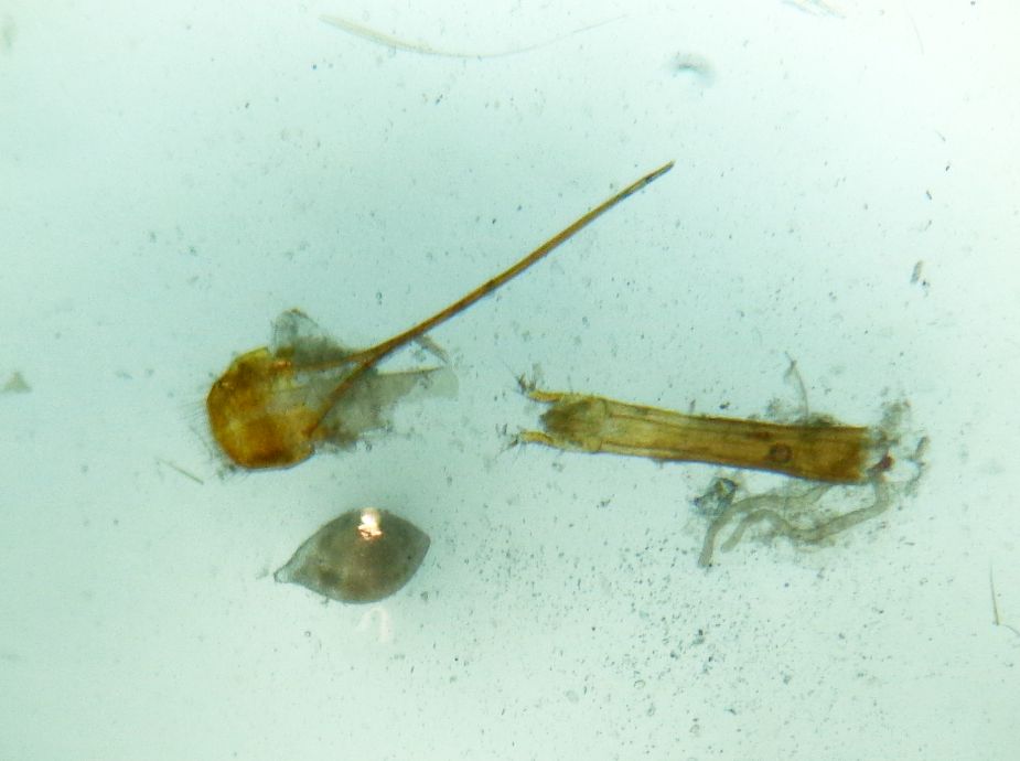 Con i lavori citati nei link, in particolare l'ultimo di Giuseppe, e confrontando entrambi, mi sono persuaso che è veramente G. immarginatus, dopo peraltro aver estratto questa femmina e aver seguito le chiavi ed esaminato i disegni. Posto le nuove foto a cui faccio seguire i commenti. Nelle foto si nota l'ovopositore (e coxiti all'apice) visto da sopra e da sotto, e un gruppo di uova (credo) in soluzione acqua e ammoniaca (per reidratare di più) e in ultima foto il preparato in euparal su cartellino in plastica. Seguendo le chiavi delle specie eurasiatiche si arriva al punto 6 giocoforza, per esclusione delle tre specie precedenti, troppo diverse; dico giocoforza perchè il punto 6 vorrebbe il rapporto lunghezza/larghezza delle elitre (L/l) almeno di 1,9 (mentre qui esso è poco più di 1,7), ma di questo rapporto dirò tra poco. Dal punto 6 si arriva agevolmente (caratteri tutti presenti e ben leggibili dal "vivo", compresi granuli del protorace e pubescenza del corpo), alla dicotomia 13/14 = corsicus/ immarginatus; le descrizioni combaciano perfettamente sopra e sotto il corpo con immarginatus; in particolare l'aspetto di meso e metasterno, compresa l'incisura di quest'ultimo, inciso come in fig. 53 e non come in 47 e sopra, la forma del pronoto, identico a fig. 51 e 52 e non come in 45. I disegni con relativa scale bar mostrano per immarginatus un rapporto L/l di circa 1,7 come nel mio; forse i maschi hanno un rapporto maggiore, ma io non ne ho. Infine, riguardo all'aspetto dei coxiti, trovo corrispondenza con immarginatus più che con corsicus (vedi lavoro francese con le immagini), quantunque poco diversi tra loro. Non chiedetemi altro: è stata una faticaccia ed ho dovuto riattaccare due antennomeri terminali staccati nella manipolazione; niente da fare invece per un onichio ed un palpo! La cosa che mi sorprende sono le dimensioni delle presunte uova pragonate all'ovopositore, che appare ben più esile Commenti? Sono graditi! Grazie a tutti gli intervenuti ed a Giuseppe in particolare. P.S.: il secondo lavoro "aggira" il problema di capire il gruppo di specie e quindi di valutare preventivamente il bozzo sul davanti del protorace, ma le figure sono esplicative ed in effetti in corsicus/ levigatus tale bozzo è meno evidente (figure) ma se avessi inclinato di più l'insetto esso appariva più netto in elevazione (vedi freccetta).