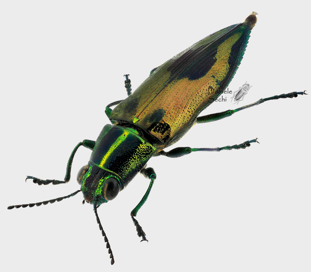 Pensa che l'esemplare maschio ai tempi di Kerremans lo avrebbero classificato come altra specie: Parataenia aspera Kerremans, 1892 (qui il disegno). Anche io i primi esemplari che ricevetti parecchi anni fa li avevo sotto questo nome. Poi è stata messa in sinonimia, non ricordo quando. Stranamente su questo sito viene dato come sinonimo di Parataenia chrysochlora, che è abbastanza diversa, e non di orbicularis. Boh!