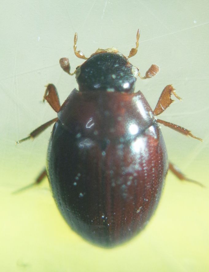 Questo non ho capito nemmeno la famiglia! mm 2, formula tarsale 5,5,5, unghie sembrano lisce, tibie anteriori incavate all'esterno all'apice, fronte senza sutura clipeale, elitre striate (!!), primo segmento addominale basalmente con grossi punti e parte apicale liscia (se bene vedo), clava antennale di tre articoli, il 2° metà lungo degli altri. Molto particolare la forma dell'apofisi prosternale, con incavo ad angolo acuto. Grazie per ogni parere. :hi: