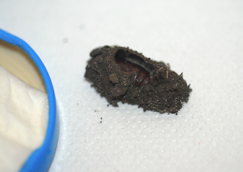 Crisalidi trovate spostando dei vasi in giardino, le crisalidi erano contenute in un bozzolo costruito tra lo spessore del fondo del vaso e il terreno. La lunghezza è di circa di 2-2,5 cm.