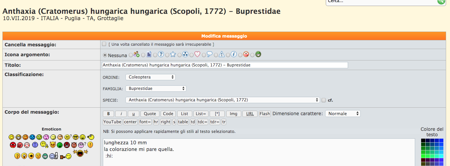 la lasceremo così...cliccando sul simbolo di fianco al titolo appare comunque la scheda della specie.