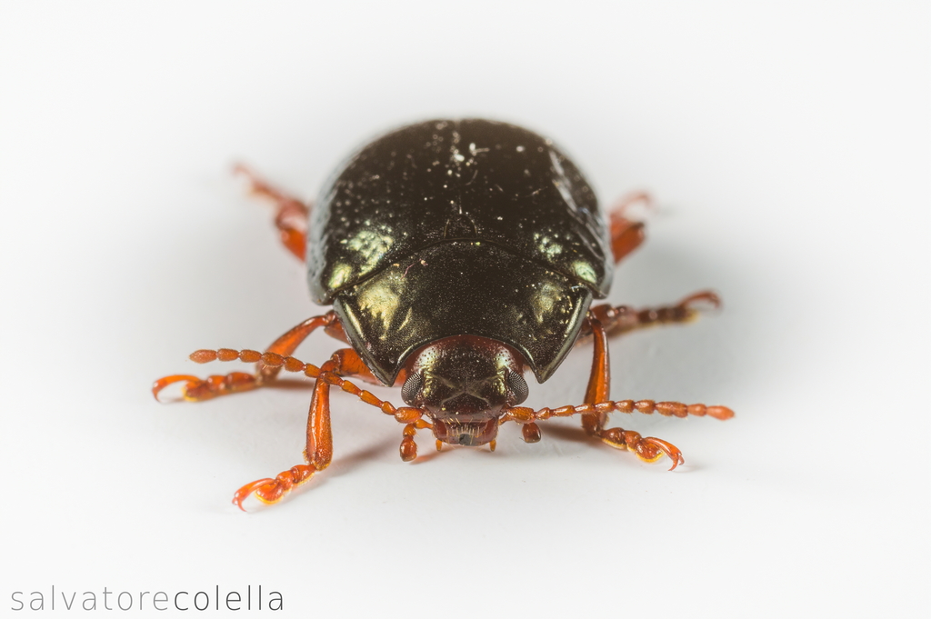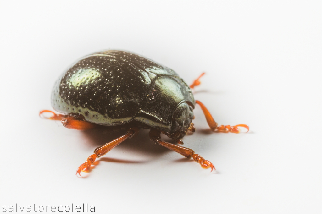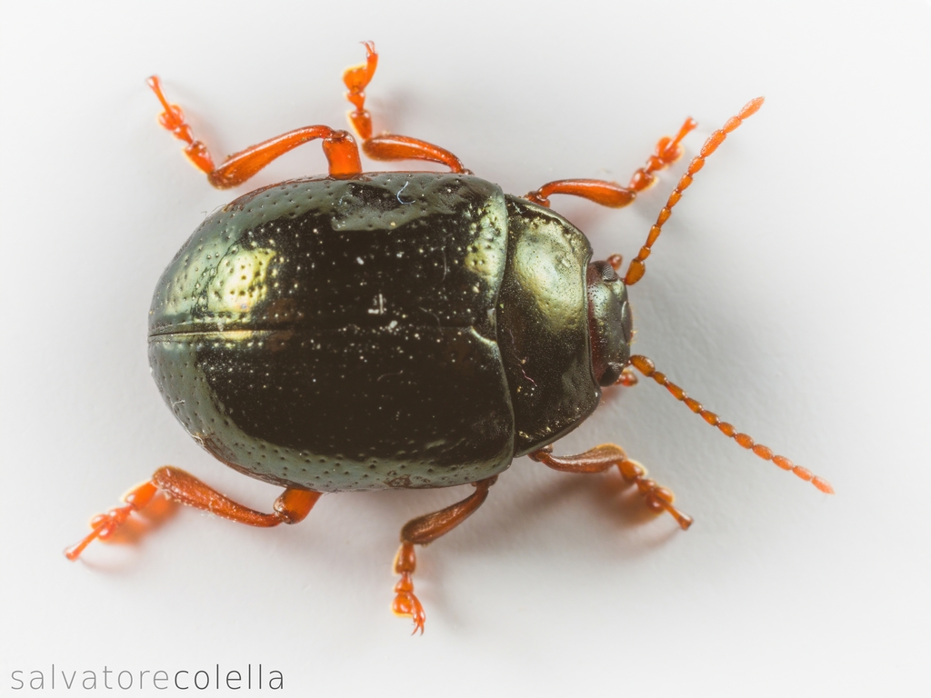 Ciao a tutti, questo è il mio primo post, quindi, se commetto qualche errore o dirò qualche castroneria, vi prego di essere magnanimi. :oops: In data 24 marzo 2020, ho trovato sotto lo zebino di casa qui a Pozzuoli (NA), questo esemplare che credo essere una Chrysolina bankii. Premetto che abito in una zona abbastanza rurale e umida, praticamente mi ritrovo in mezzo a due laghi, inoltre abito a piano terra e fuori la porta c'è un piccolo giardino. Non sono un entomologo e ho un approccio dilettantistico alla materia. Nonostante ciò sono enormemente affascinato da questo mondo e ormai sono un paio di anni che mi diletto nel fotografare insetti. Questo esemplare, che come vi dicevo ho trovato sotto lo zerbino, pensavo fosse morto, con le zampe completamente ritirate, poi, maneggiandolo, ho visto che si muoveva. Da ignorante, ho pensato che l'abbassamento improvviso delle temperature lo avesse indotto a trovare rifugio sotto lo zerbino, quindi l'ho tenuto nella mano, al caldo e ho visto che ha iniziato a muoversi. A questo punto ho pensato di dargli un po' di acqua e zucchero, se io fossi stremato gradirei :lol: Ora non so se ha realmente bevuto o se si è solo fatto una lavata di faccia, fatto sta che dopo è diventato molto più arzillo e ha iniziato a gironzolare con molta energia. A questo punto ho deciso di provare qualche scatto indoor (premetto che non ho affatto esperienza con la fotografia di insetti a fine di catalogazione), l'esemplare ovviamente era vivo (lo è ancora, rinchiuso in un barattolo). Misura all'incirca 9 mm. Oltre a una conferma sull'identificazione, chiederei ai più esperti cosa mi consigliano di fare per il rilascio in natura, aspettare temperature più miti per poi rilasciarlo? E nel caso, quanto tempo ancora può sopravvivere all'interno di un barattolo (che almeno una volta al giorno apro per far arieggiare)? Ovviamente sarei immensamente felice di avere anche più notizie sulla specie, se è possibile determinarne il sesso, se è un giovane o un adulto e quali sono le sue abitudini.