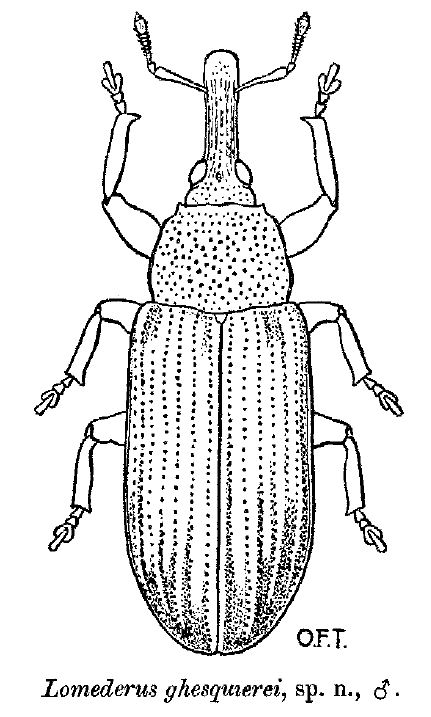 Ho fatto qualche ricerca, ma non trovo molto. Per esempio, Marshall nel 1932 ha descritto un Lomederus ghesquierei (e Ghesquiere gli ha risposto con un L. marshalli nel 1939) del Congo. Ma non ho il lavoro di Marshall dove dovrebbe comparire un disegno. Provo a richiederlo nella sezione "sto cercando ...".