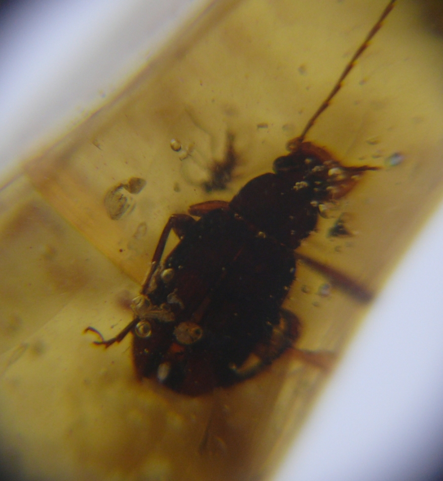 Ho in collezione questo campione di copale e al suo interno ho trovato questo coleottero (0,6 cm).