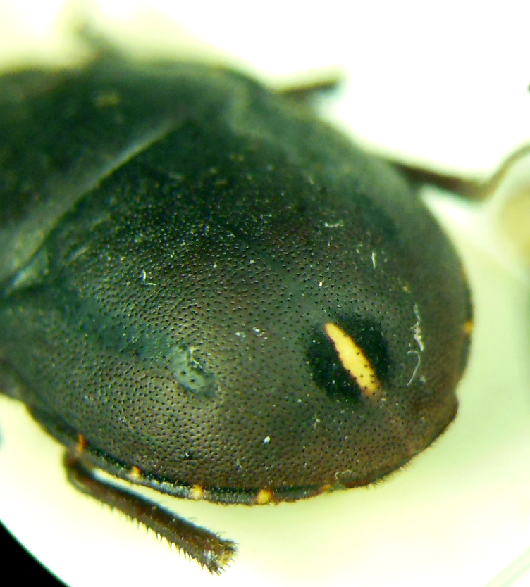 Insetto che avevo messo tra i tenebrionidi, ma che ora, sotto il binoculare, mi ha disorientato soprattutto per quello strano disegno in fondo alle elitre e per come si presenta di fianco, tra il pronoto e l'elitra, dove si nota una specie di altra elitra...Misura mm. 9
