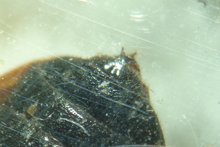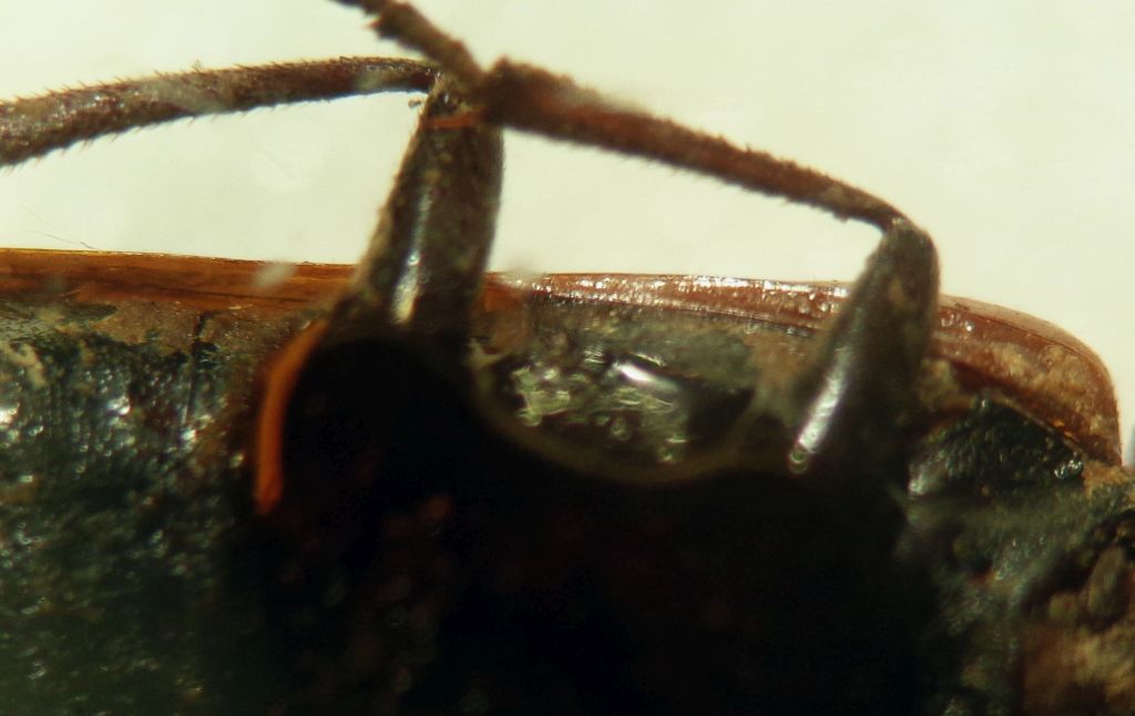 Ho dispar maschi e femmine anche presi in copula (il maschio è inconfondibile!) e pubblicati qui viewtopic.php?f=178&t=62710&hilit=Omophlus+dispar; posto foto di quella femmina, del torace e dell'ultimo sternite che sono molto differenti, in particolare il primo, da quelli del nostro sconosciuto del quale metto un paio di foto da due angolazione dello sternite ultimo che mostra come il "becco" sia preceduto solo da un molto vago accenno di fossetta che invece è netta in dispar femmina. dispar femmina inoltre è più corta, con elitre allargate dietro, per non parlare del torace, con larga doccia, fossette profonde laterali e punti sì fini ma uniformemmente distribuiti: nel nostro, ci sono due aree ovali, mediane e verso i lati (vedi foto), in cui manca la punteggiatura, lucidissime; inoltre, aggiungo che nel nostro le zampe sono uniformemente brune e non nerastre o nere. Non so se questo aggiunge qualcosa ma ormai si è detto tutto credo e rimarrà Omophlus sp. :cry:
