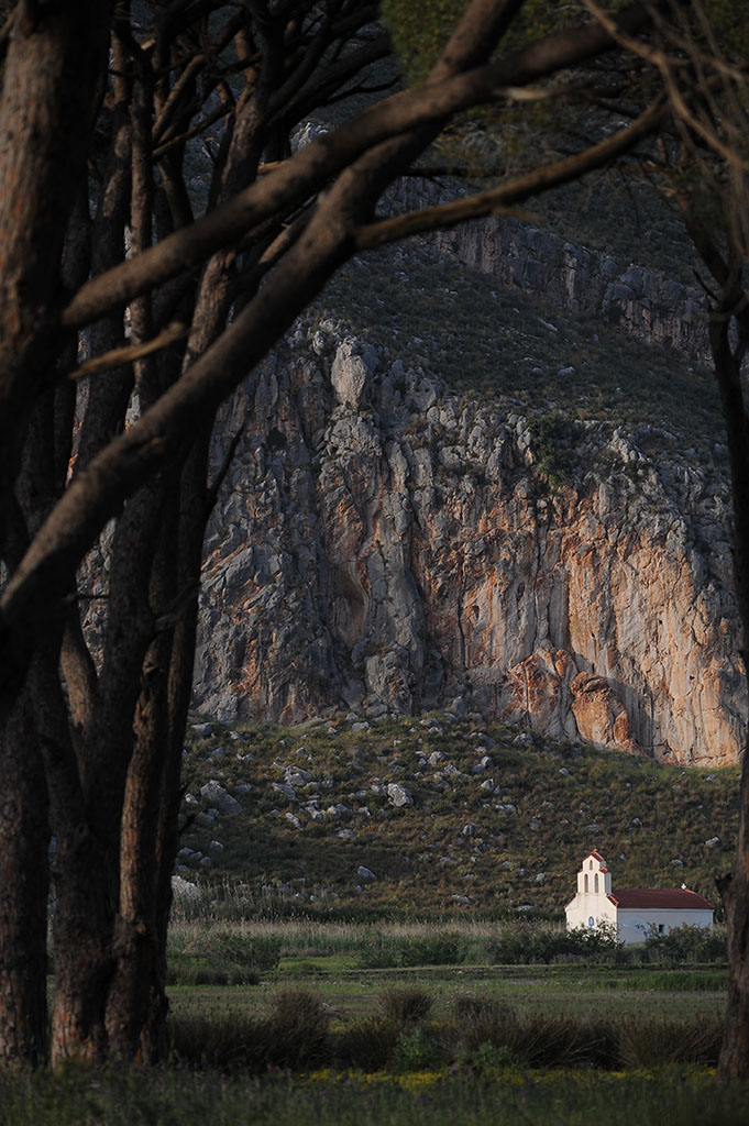 La chiesetta su cui sempre si appunta lo sguardo. E' collocata in modo che praticamente è sempre visibile, a meno di sdraiarsi nell'erba. Personalmente, amo la sobrietà delle chiesette rurali greche, dove a disposizione del viandante c'è sempre dell'olio per alimentare le poche lampade, qualche candela, e poi la fede.