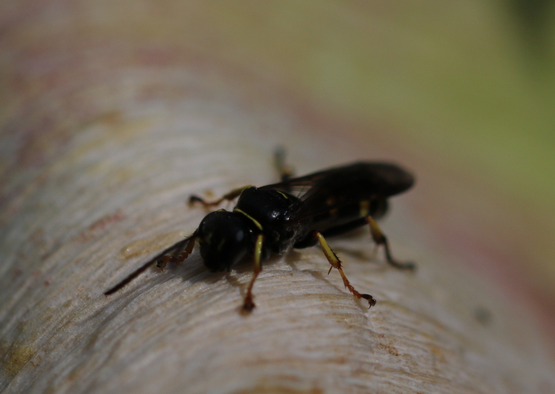 Anche schiarendo questa immagine, questo esemplare lascia perplesso anche me: sembra un Crabronidae ma escluderei tutti i Crabronini simili (capo diverso) e Mellinus del quale non pare avere il peduncolo e molte altre cose; tra quel che resta niente mi convince. Un Apoideo così glabro e fatto? Boh, non li conosco. Ci sono foto della venulazione alare completa?