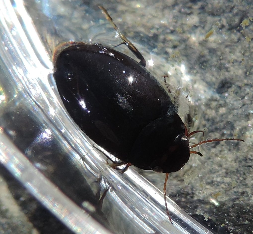 L'ho già postato su FNM, e Giorgio Pezzi (Chalybion) ha suggerito che possa essere un Ilybius, date le dimensioni piuttosto grosse per un qualunque Agabus (misurava 14 mm circa). Al colle del Nivolet, a circa 2600 metri di quota, ho visto su CKMap che è segnalato I. fuliginosus, ma Giorgio suggeriva piuttosto I. ater. Che ne pensate?