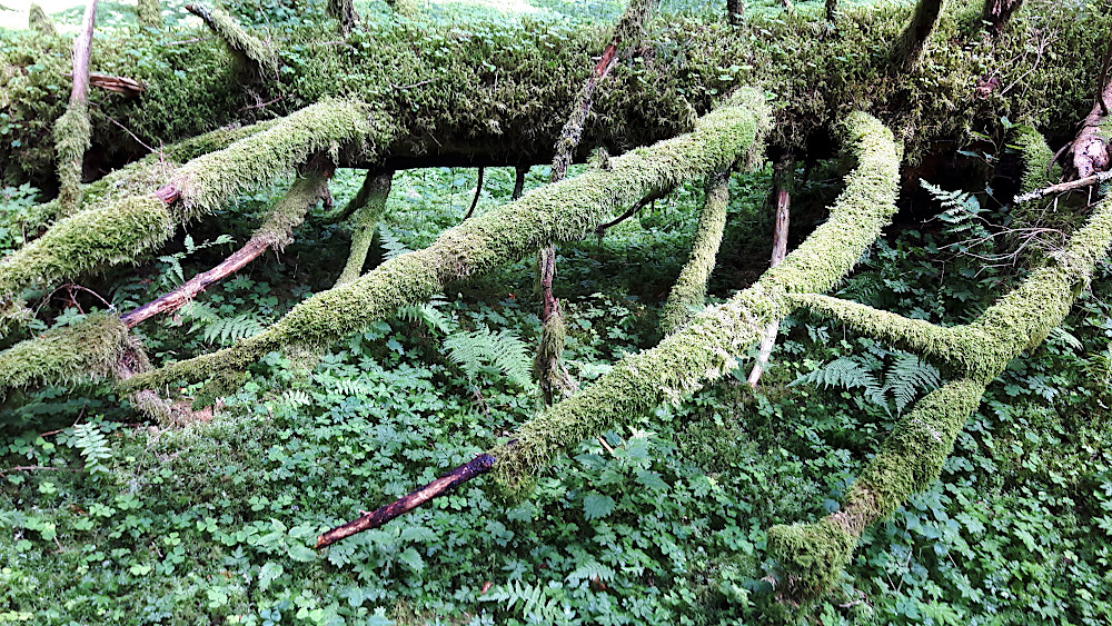 Magari è l'atmosfera un pò "magica" di questo posto, ma le foto del tronco morto con quelle sorta di appendici, sia al di sopra che al di sotto di quel lungo corpo mi hanno fatto venire in mente Hallucigenia, probabilmente il fossile più straordinario della straordinaria fauna di Burgess shale.
