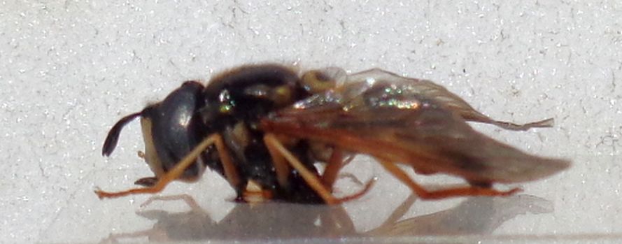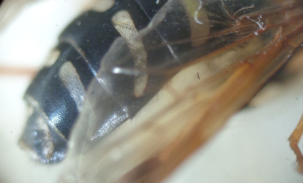 Potrebbe essere un maschio di Chrysotoxum festivum (Linnaeus, 1758). Per esserne sicuri occorrerebbe una foto della parte ventrale dell'addome dove si possano apprezzare i contorni degli sterniti, una foto laterale dell'addome dove si veda il colore di tutto il margine e una foto dello scutello che consenta di valutare la lunghezza dei peli (c'è una variante delle leggi di Murphy che vale in questi casi: non importa quante foto fai per rendere possibile una determinazione, ne manca sempre qualcuna).
